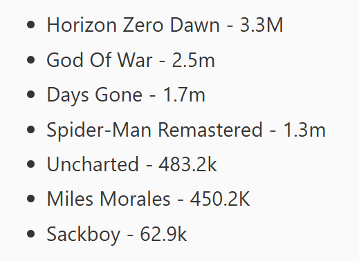 >>724276629Skipped HZD, GOW, and GOT though.