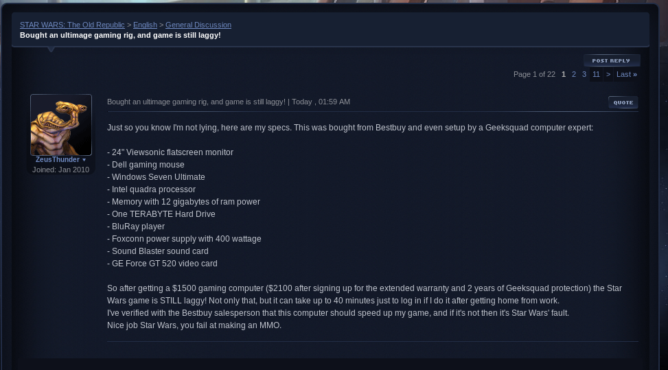 >>724286018He got hustled by Best Buy and the Geek Squad, lag is from the netspeed.