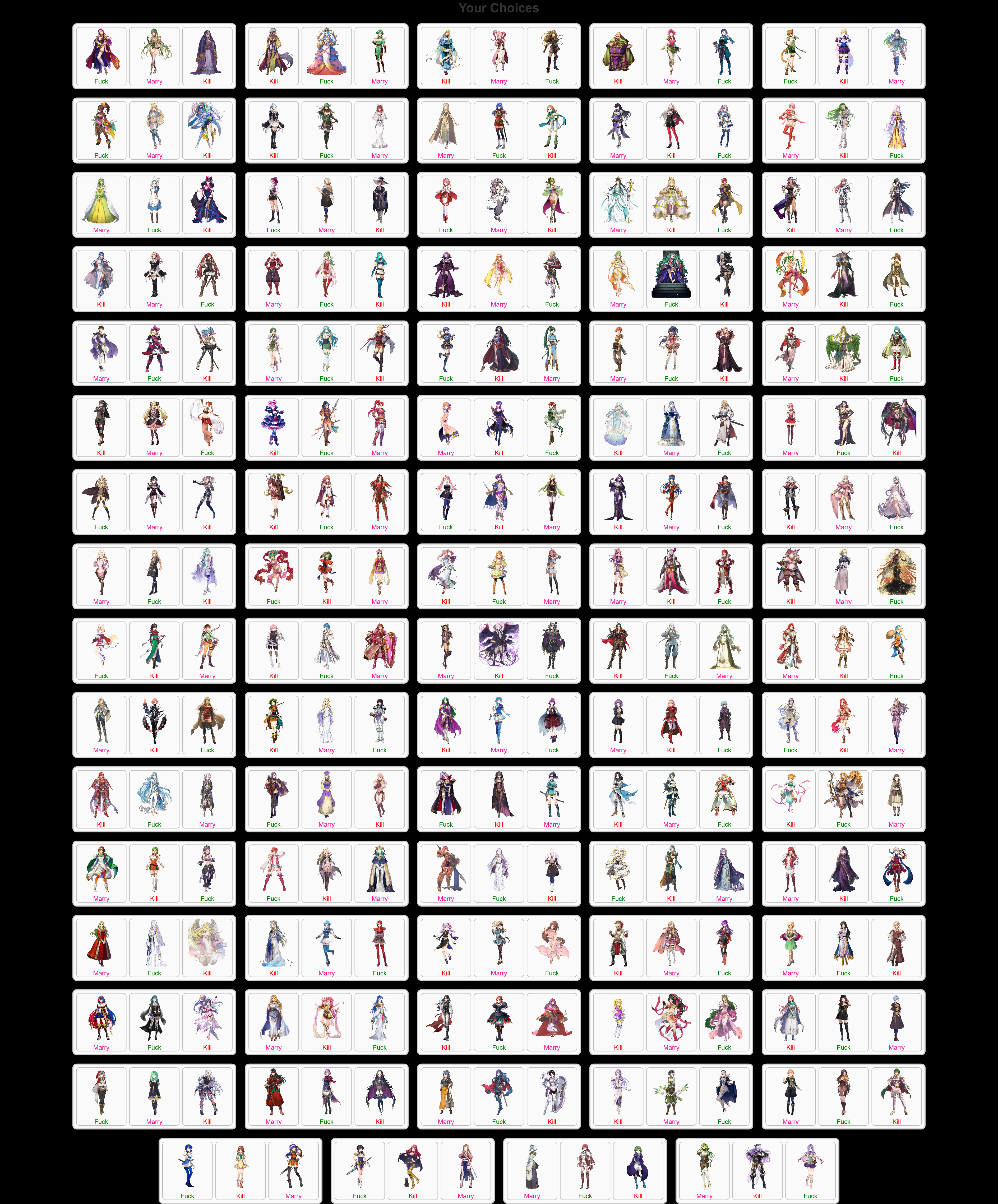 >>724286226Your premise is retarded from its base foundation because there are games with more waifus than fire emblem,and yet people who play fire emblem choose fire emblem. this is just the "people who like anime games don't care about gameplay" argument all over again that ignores the question of why some anime games succeed where others fail.