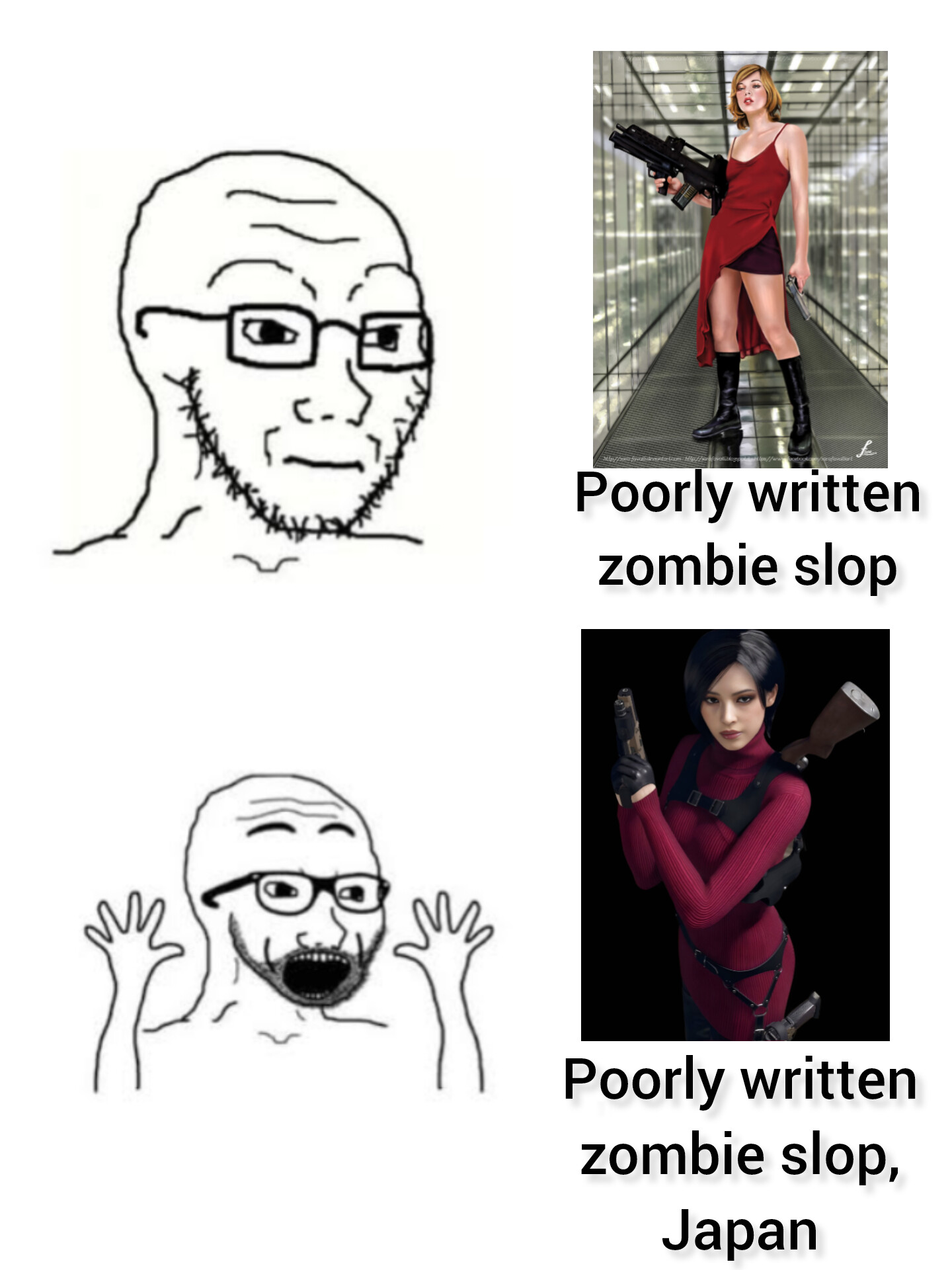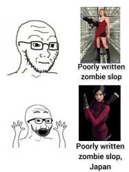 >>724291970HAHAHA!This is my favourite cope.We can all agree they are great games, but the writing is actual dogshit. You can't adapt RE writing into Shakespeare, because its fucking terrible.So, you have a game series with>dogshit writing>fun>hot babes>zombiesThe movies have>dogshit writing>fun>hot babes>zombiesStop being a faggot. The movies understood the assignment. Everything else is Millenial cope.