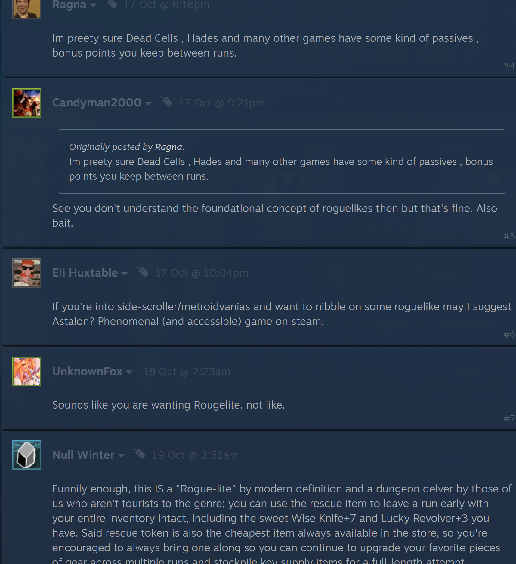 has there been a spergout about roguelikes and roguelites yet today?gotta keep on schedule