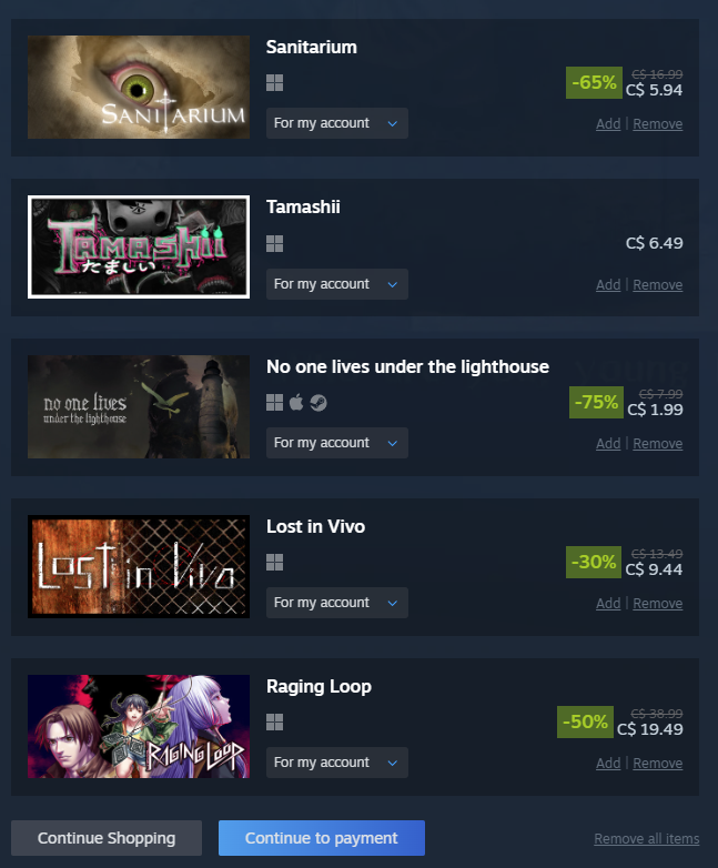 >>724337620christ, 70% of my wishlist isn't even on saleat least I can buy of the killer even doe it's free on itch
