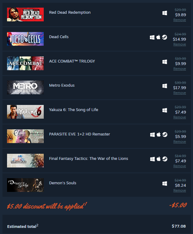 >>724337620This sale is so narrow that my wishlist just looks like every other random week