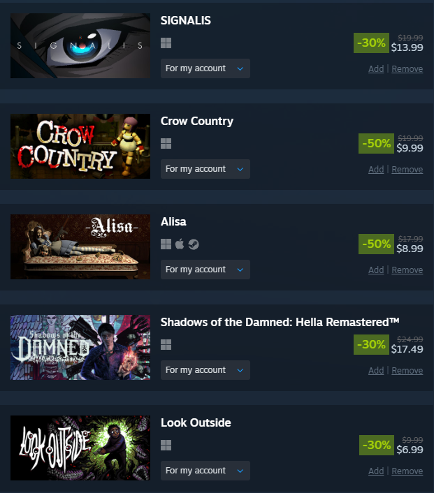 holy fuck this sale is dog shithalf the horror games on my wishlist didn't even go on salethe other half has 20% worse prices than last year