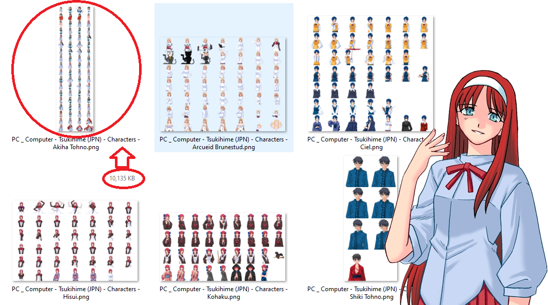 >>724379730But the shading looks about the same. Unless there is a version of Tsukihime that looks worse than the one I've always seen on YT which is the same as the one I originally played when I discovered Tsukihime in middle school which still looks the same as the version I have today which I got off of a Tsukihime fan website. The only difference I can tell is that KT+D has more sprites than vanilla Tsukihime, which makes sense as there are more scenes, but the new sprites all have the same style of shading and coloring as the original sprites (which also makes sense if they were made to blend in with the old ones in order to avoid having to make new sprites for the old poses). Also after looking at the sprite sheets, I see that Akiha seems to have gotten quite a bit of favoritism