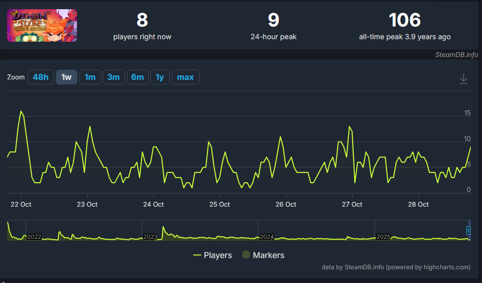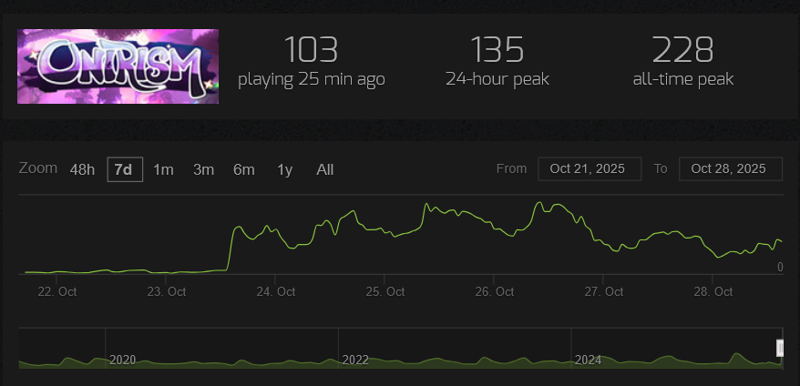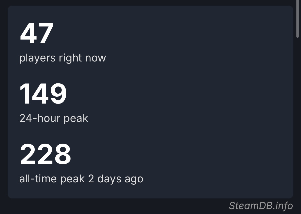 >>724442756Respectable max concurrent players for indie...Much higher profile indie games got less.