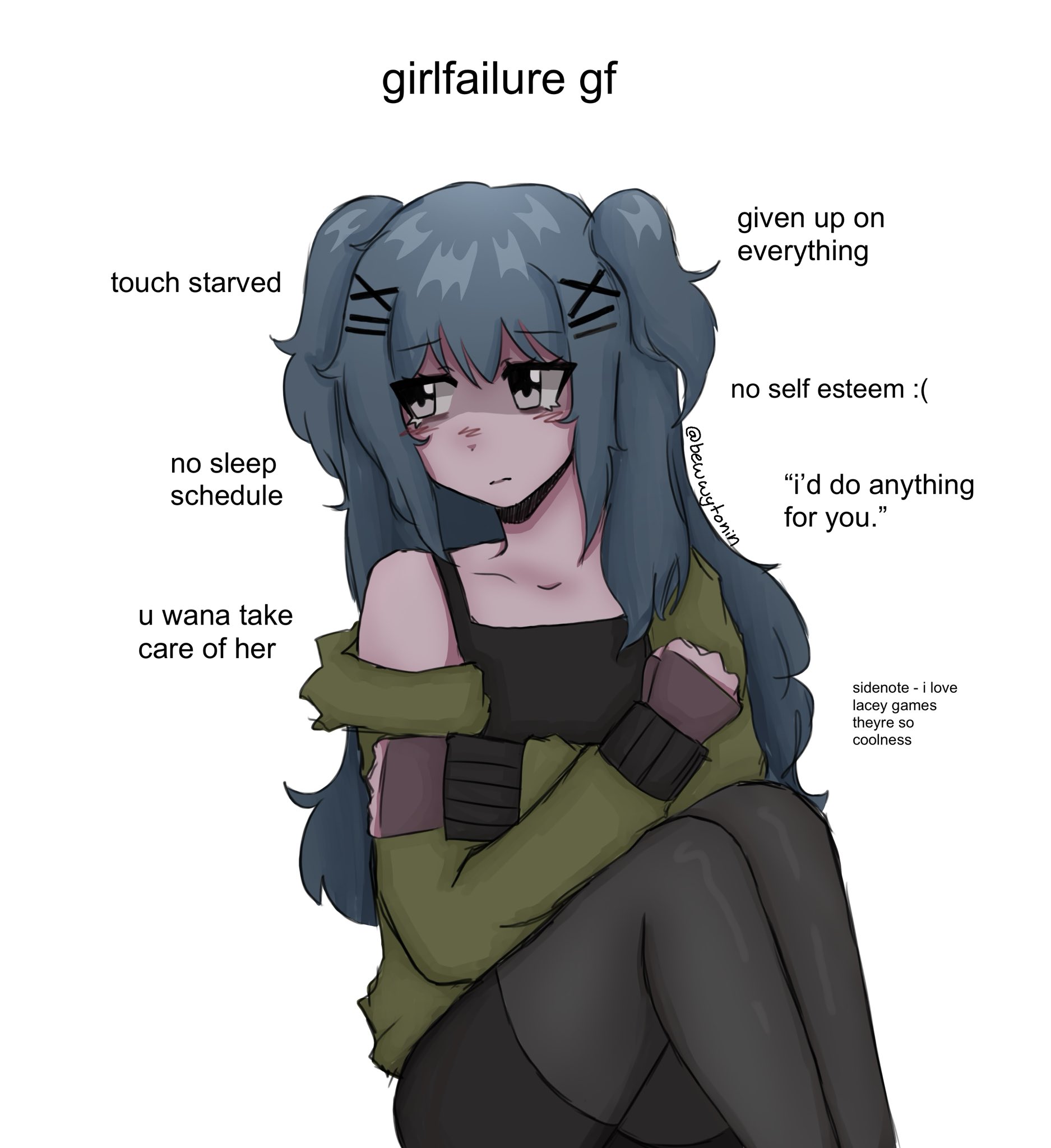 >>724374107>aren't virginsI mean yes preferably for a woman you want a serious relationship with, this is better, but also you should recognize that when you start to ideate around women who are mentally ill, who like you say have bad hygiene, who are dead end losers, probably are unpleasant to be around, just because MAYBE they are more capable of affection than a 'slut,' (conventionally desirable woman), you should probably reconsider your tastes and realize doujins are like real life and you probably don't actually want a mirror copy of yourself.Maybe not (you) specifically, I'm just saying this about what seems to be a common preference of people on 4chan.