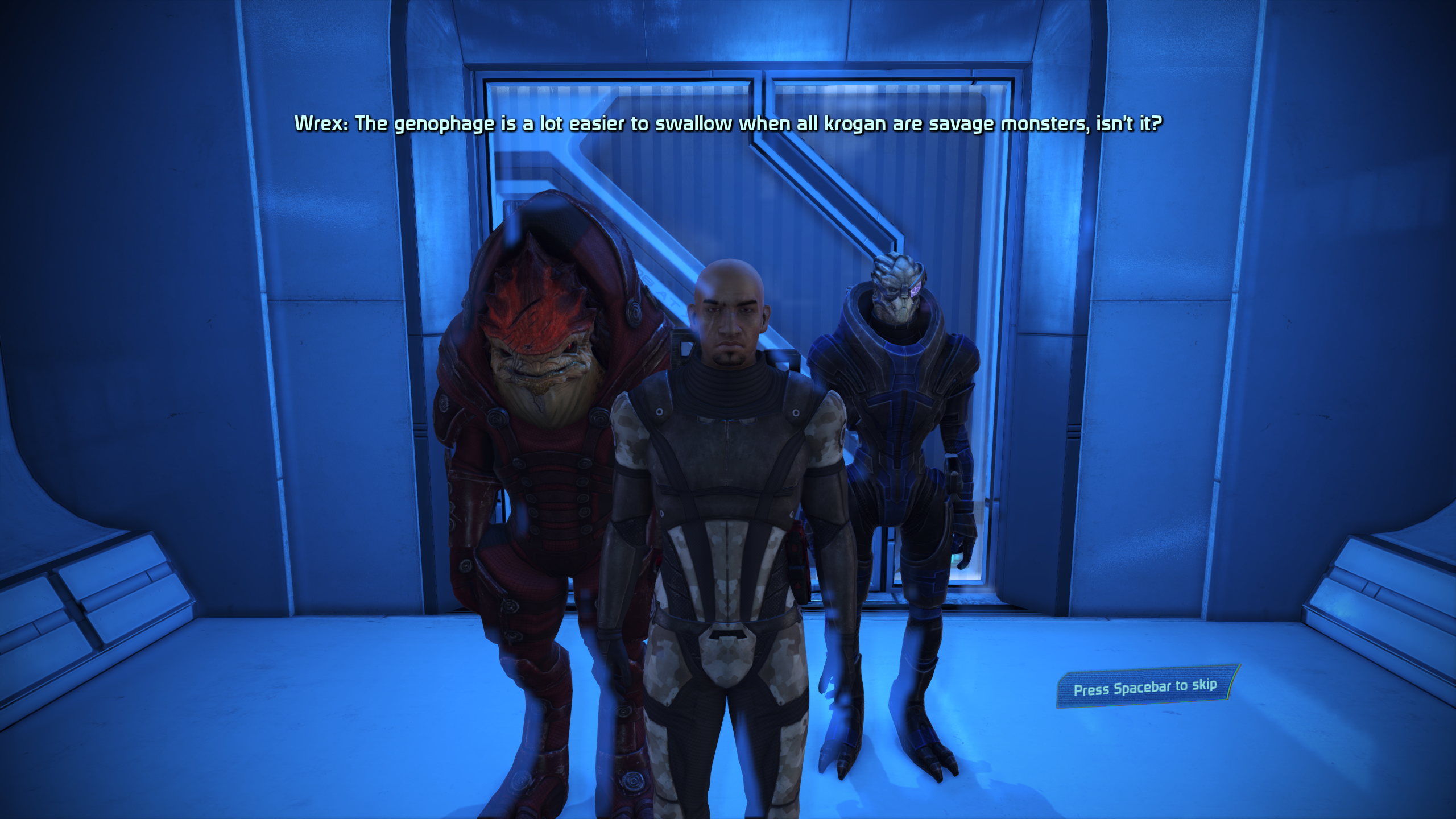 The krogans had to be put down out of necessity, because they were dumb violent niggers that were given access to advanced tech. But they're just dumb niggers. The salarians are fucking insane, and honestly the much greater threat.