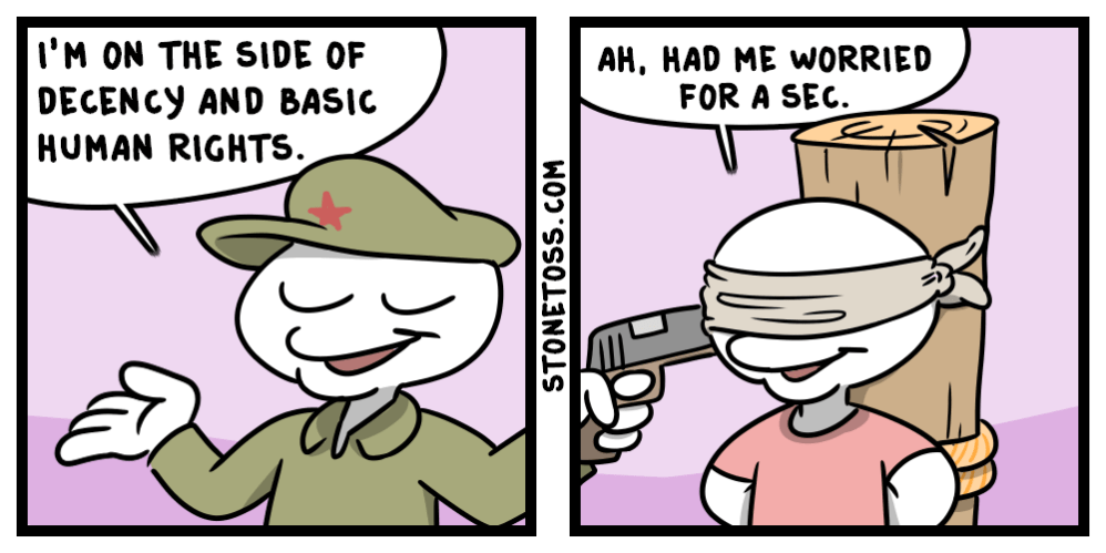 >>724468553>>724468572Okay, I'll help you out. This isn't about what I'm physically prevented from doing or not. It's not about the rules. It's about what *you* consider to be indefensible - and what you don't.