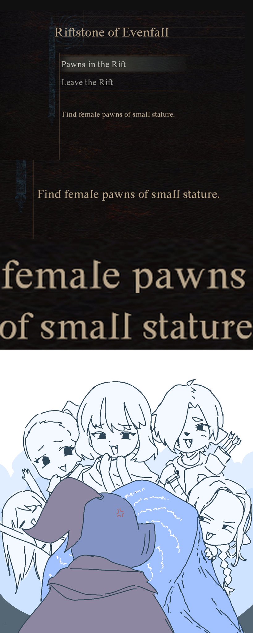 >>724523359same>me>my pawn (old warrior dude, same as in DD1>female pawn>female pawn, maybe a cat