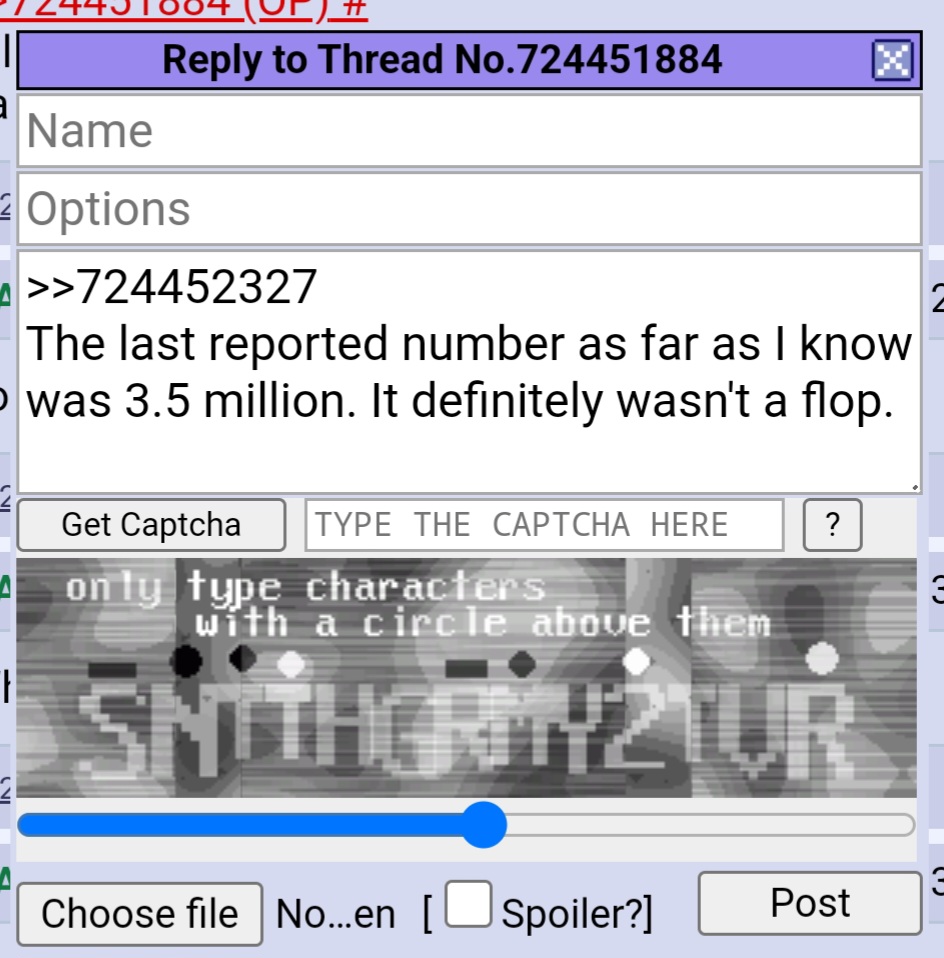 >>724452327The last reported number as far as I know was 3.5 million. It definitely wasn't a flop. What the fuck is going on with captcha