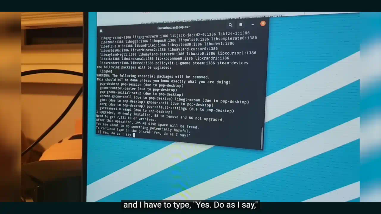 >>724473341>WARNING: The following things will be uninstalled! Don't continue unless you know what you're doing!>first package listed: pop-desktop>shocked when his desktop no longer existsThis must be how car guys feel when they watch some room temperature IQ bimbo pay for new headlight fluid with their oil change.