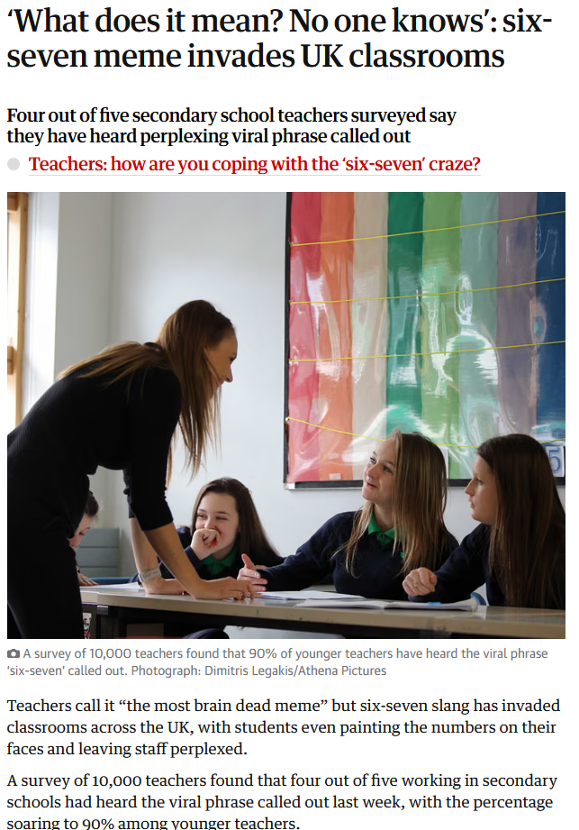 My mom's an elementary school teacher and she was asking me a few days ago what 67 meant, I'd completely forgot until now. Of course it's some retarded brainrot thing. Kids will be kids, I suppose, better that that singing skibidi toilet