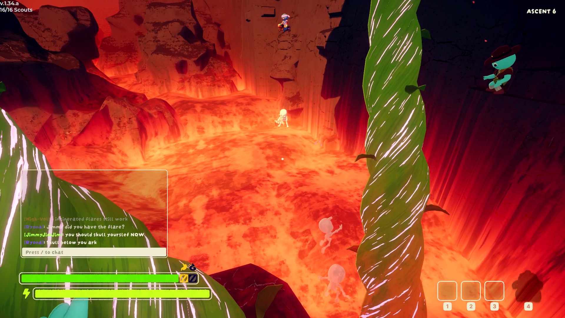 >>724611057ITS SO FUCKING PEAKthe flare holder in the kiln fell and died, but the lava ROSE and carried the flare to the top. two brave heroes went into the burning hot lava to retrieve it, and the rest of us caught it and we went home because of their sacrifice.also, skull proves itself to be the best item once again.