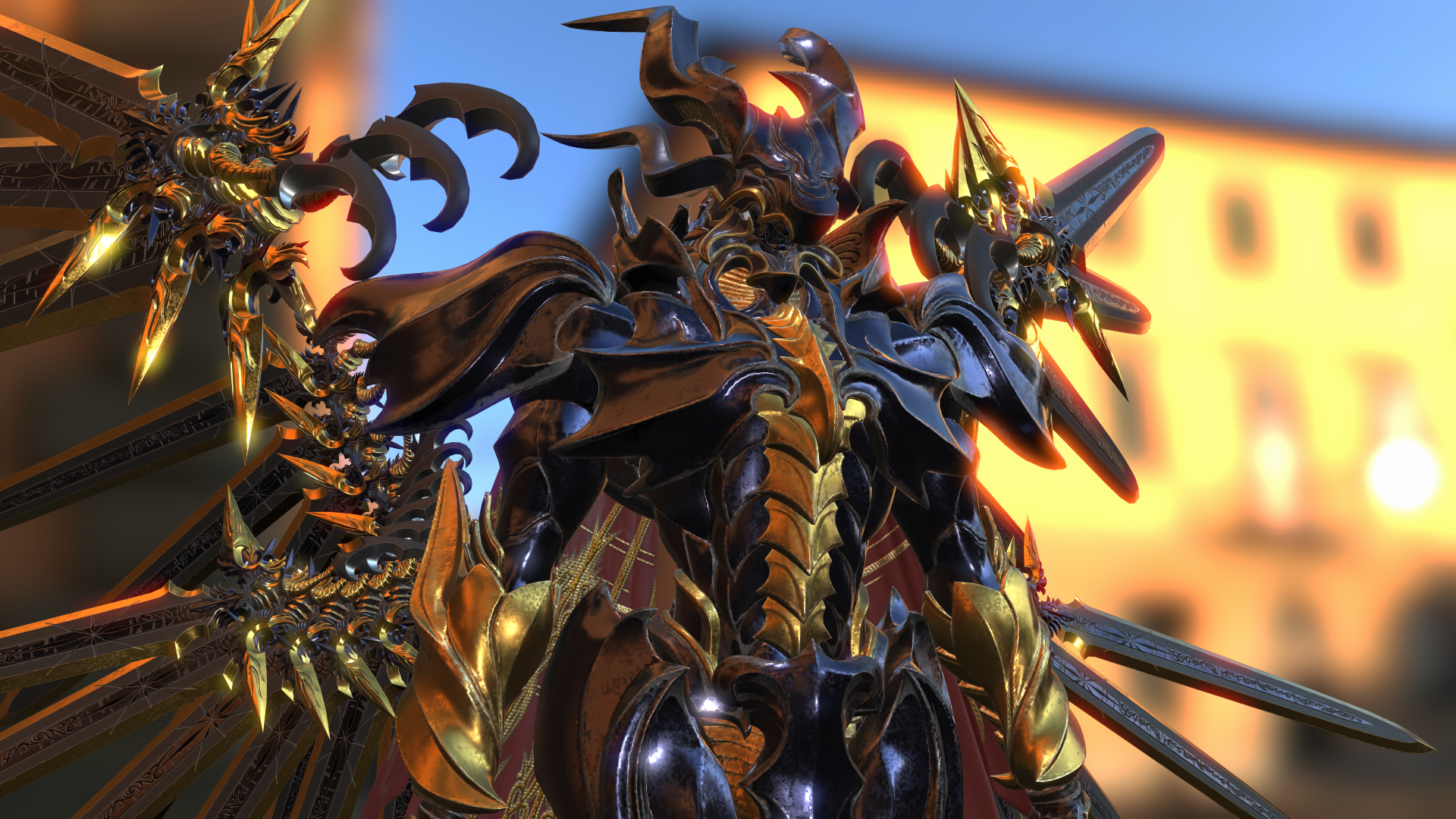 >The parts that spread out like wings are all autonomous weapons, and are highly-versatile armaments that can fire lasers which home in on enemies, or create an energy field for it to use as a shield. Furthermore, its armor, which gleams like a mirror surface, is very highly defensive, and the view projected into the eyes placed all over its body covers 360° in all directions.