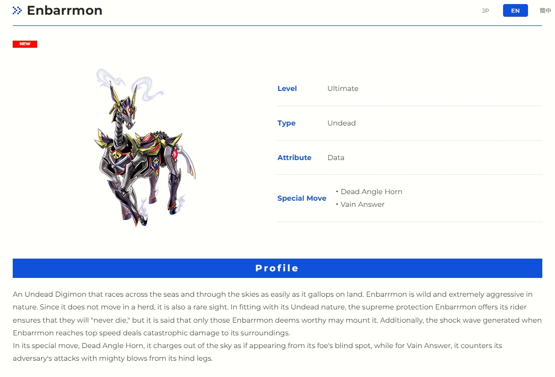>In addition, while it has an arrogant personality and looks down on others, believing itself to be a Digimon that is the most refined among Machine Digimon—standing at the top—it can also be said to be a wicked Digimon since it has the ability to counter them.