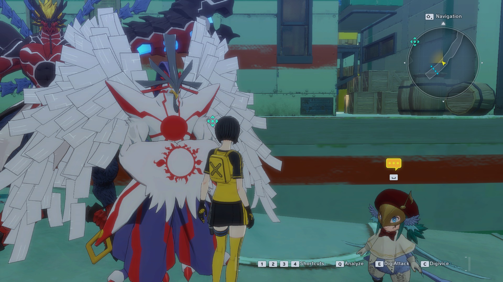 >Despite its body movements being sluggish, it is a powerful Digimon that overwhelms others in battle with its seamless actions, such as being capable of flexible fighting thanks to its autonomous weapons.