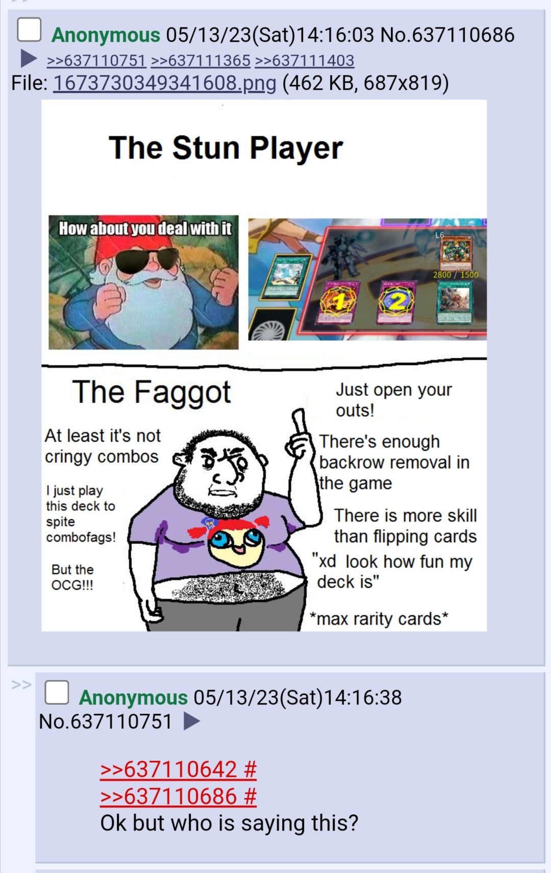 >>724586887>Compfags never existed in yugioh before 2014No one ever said.I can't cure your illiteracy by writing more to you.