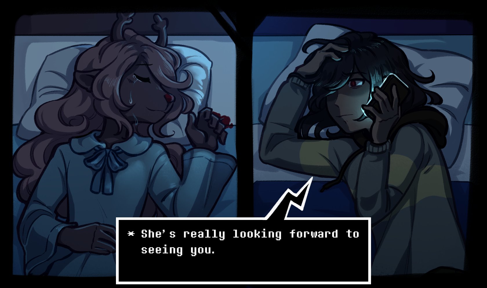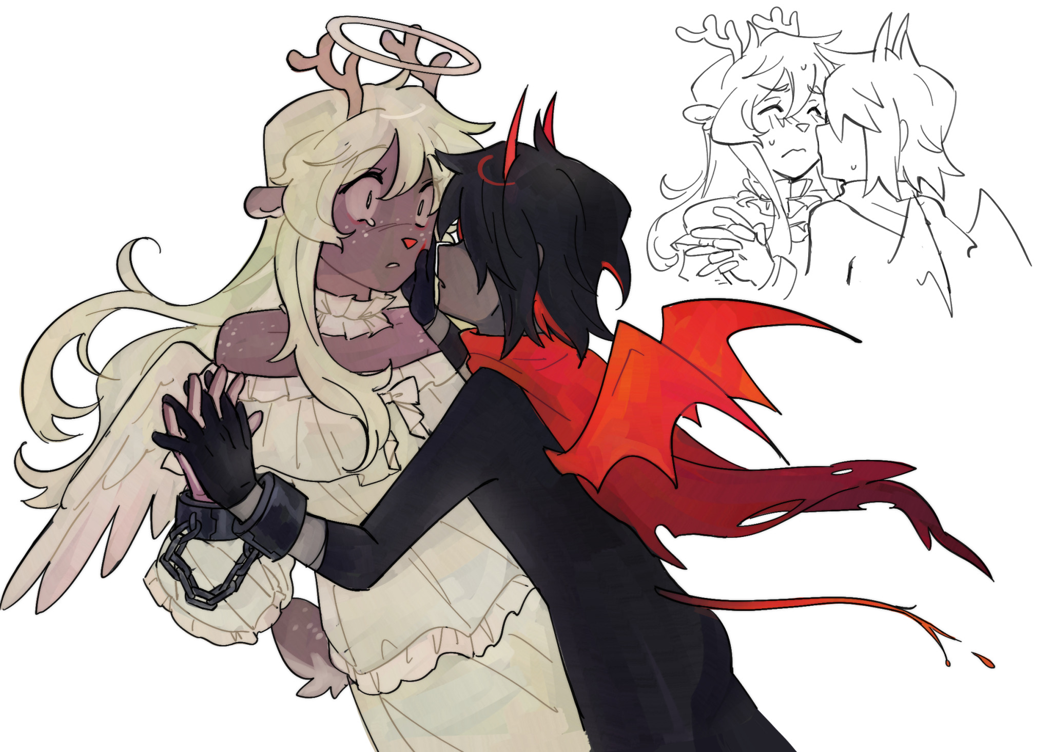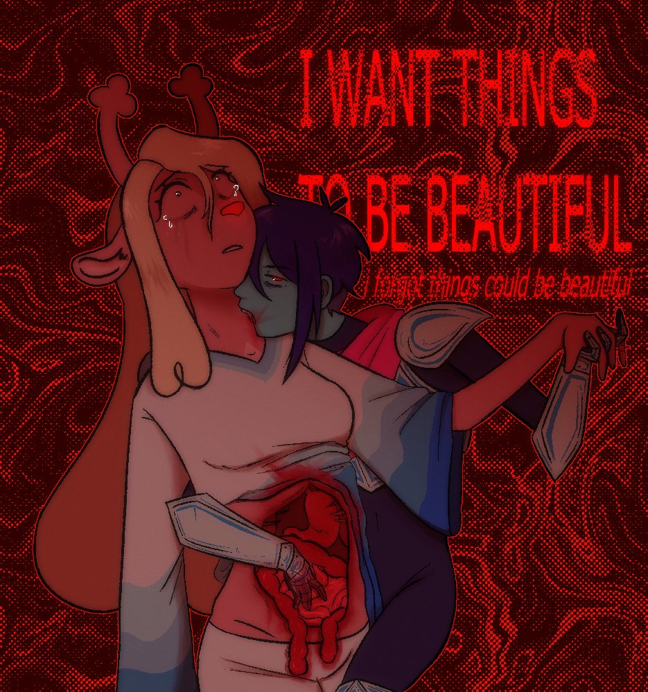 I greatly feel that the sad and weird Kriselle art is greatly overwhelming the cute and wholesome Kriselle art. I want to see more cute stuff with the autsist and the doe.
