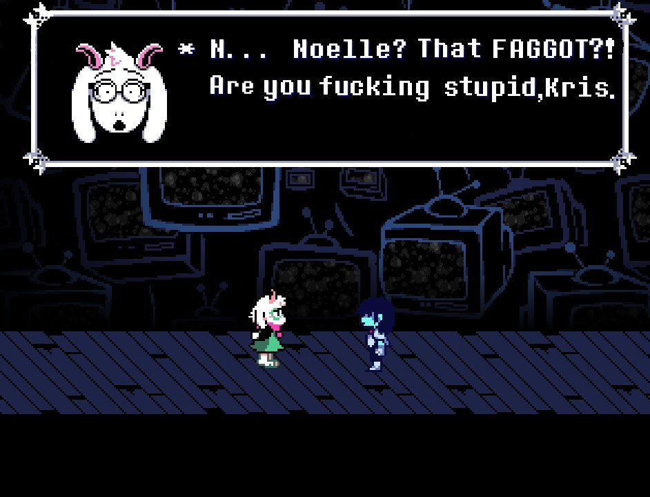 >>724588256I like Berdly too much to make him a faggot, and don't want to be a party to faggotry myself. Berdly should either fuck Susie or Temmie.