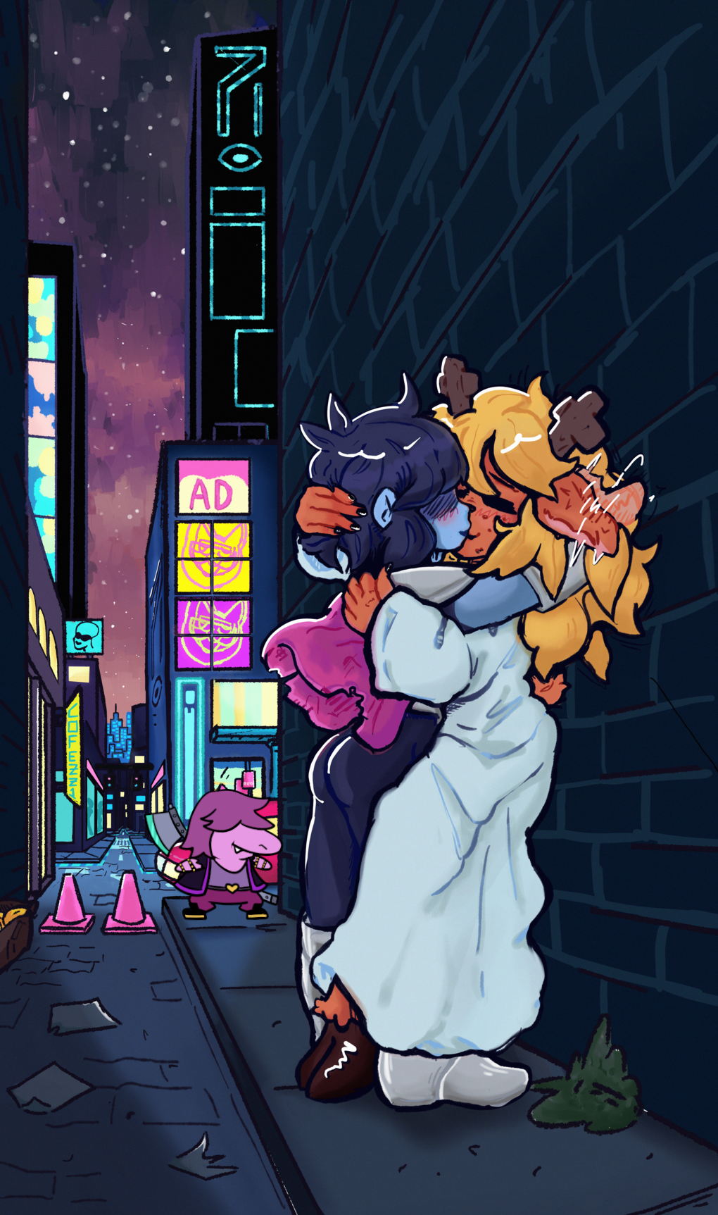 >>724609781Had I the inclination for it, I'd be drawing shit like Kris shoving his soul into Noelle and her, willingly, kissing him and refusing to let him go as he gave up and became too weak to resist. The soul would just be chilling inside of her, not even doing anything, but something as simple as Kris ripping the clothes off Noelles chest to try and get rid of it, only for it to return to him beating stronger after he got loved would be the sorta kino shit I wish I had the skill to execute.