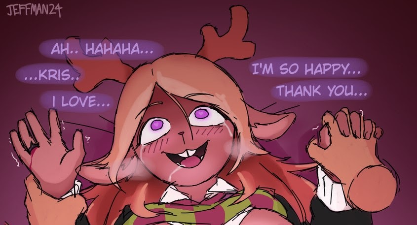 I don't like how everyone is ok with kris romancing monsters in the setting. it implies that monster x human marriages are common, in agreement with based Gerson Undertale's loredump.While it seems nice, it doesn't make Kris special, makes him and noelle crossbreeding seem much less important, much more acceptable, normal even, which throws the idea of kris fucking an anthro deer girl into the "she's just some random blondie whatever" territory, instead of Kris breaking boundaries and pioneering monster fucking and breeding, which is hotter.
