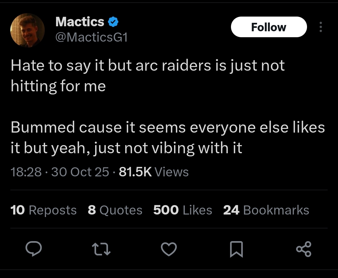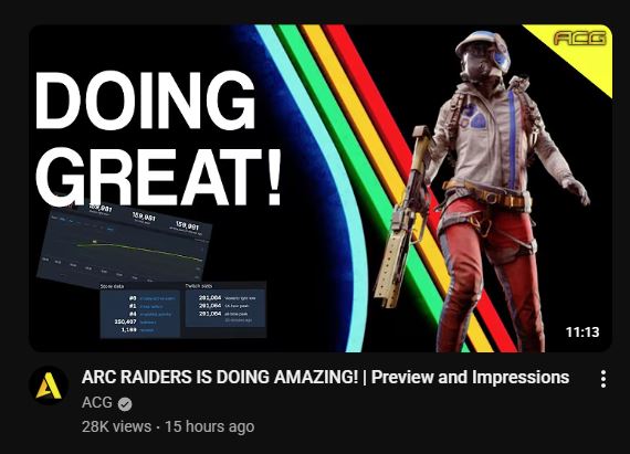 Extraction genre experiencing a mass exodus, zoomers having a potential vidya upgrade path from fortnite, and Arc not being a shit game that has had those youtubers in its beta/alpha tests haas caused a shitstorm of Arc slop on social media. It's going to get worse in future.