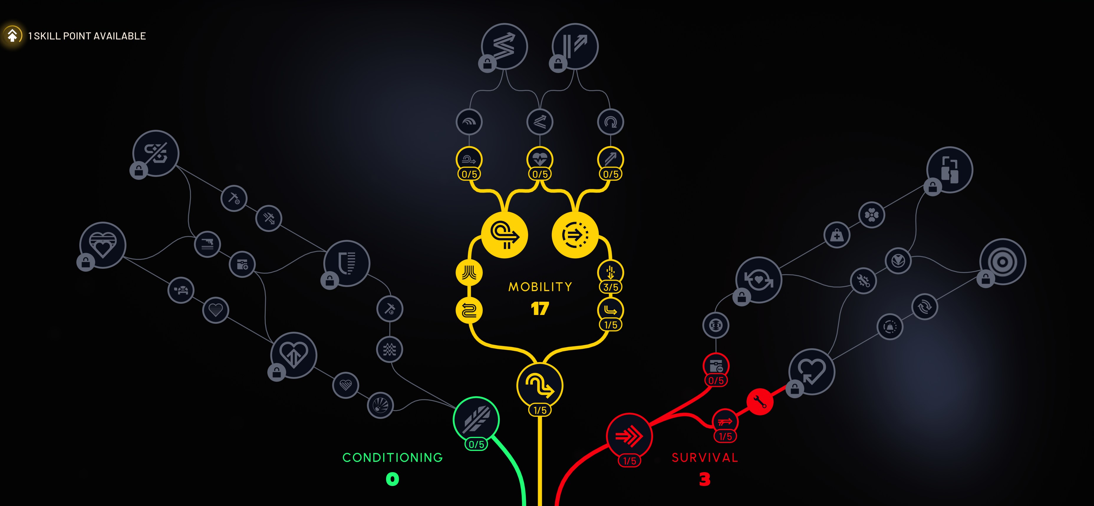 current skill tree. i debating whether to dig deeper into survival or go conditioning. any ideas?