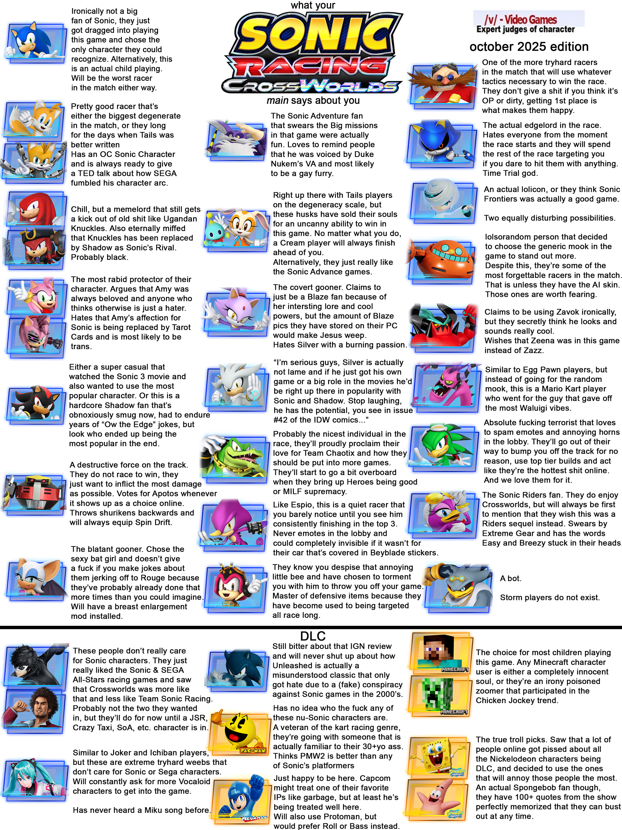 >>724612948Can confirm>>724613674I like most Sonic characters, even Silver. I think the only one I don't like is Charmy but I tolerate him