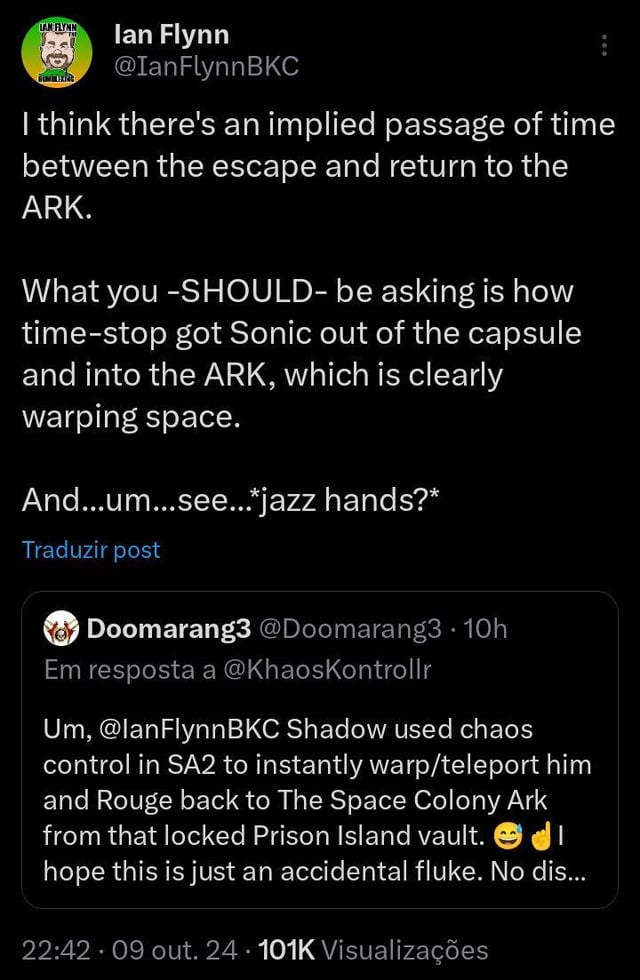 >>724652957In the JP script:>Shadow: It's meaningless for the power without experience and will. Someone like you, who doesn't know his place, shall leave.>Silver: I've overcome countless obstacles as well! Comparing to them, this race and you mean nothing!I know it's crazy, but literally everyone at SoA is wrong. Ian in particular knows fuckall about the lore, he's been wrong about basic shit countless times, like Chaos Control warping:https://x.com/Xhaos_k/status/1844130991046262907