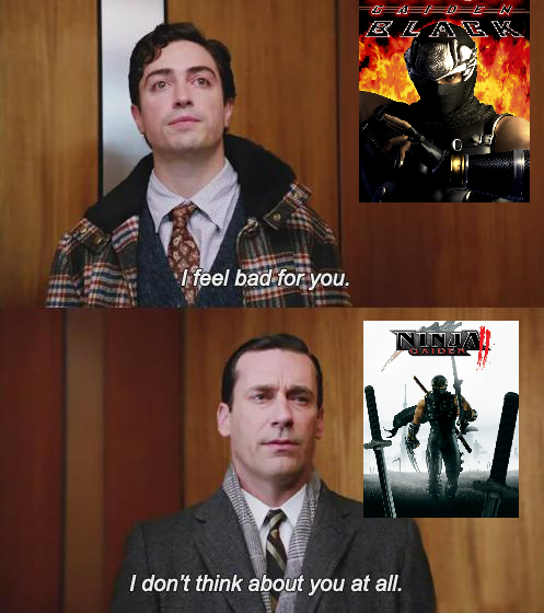 Not even speaking on NG4 as it relates to prior entries though. It might be a fantastic game, I can't say. It looks good but I don't know. I'm curious to see what Farnham The Drunk's thoughts will be on it, because he has in depth knowledge of NG2 and apparently hates it.