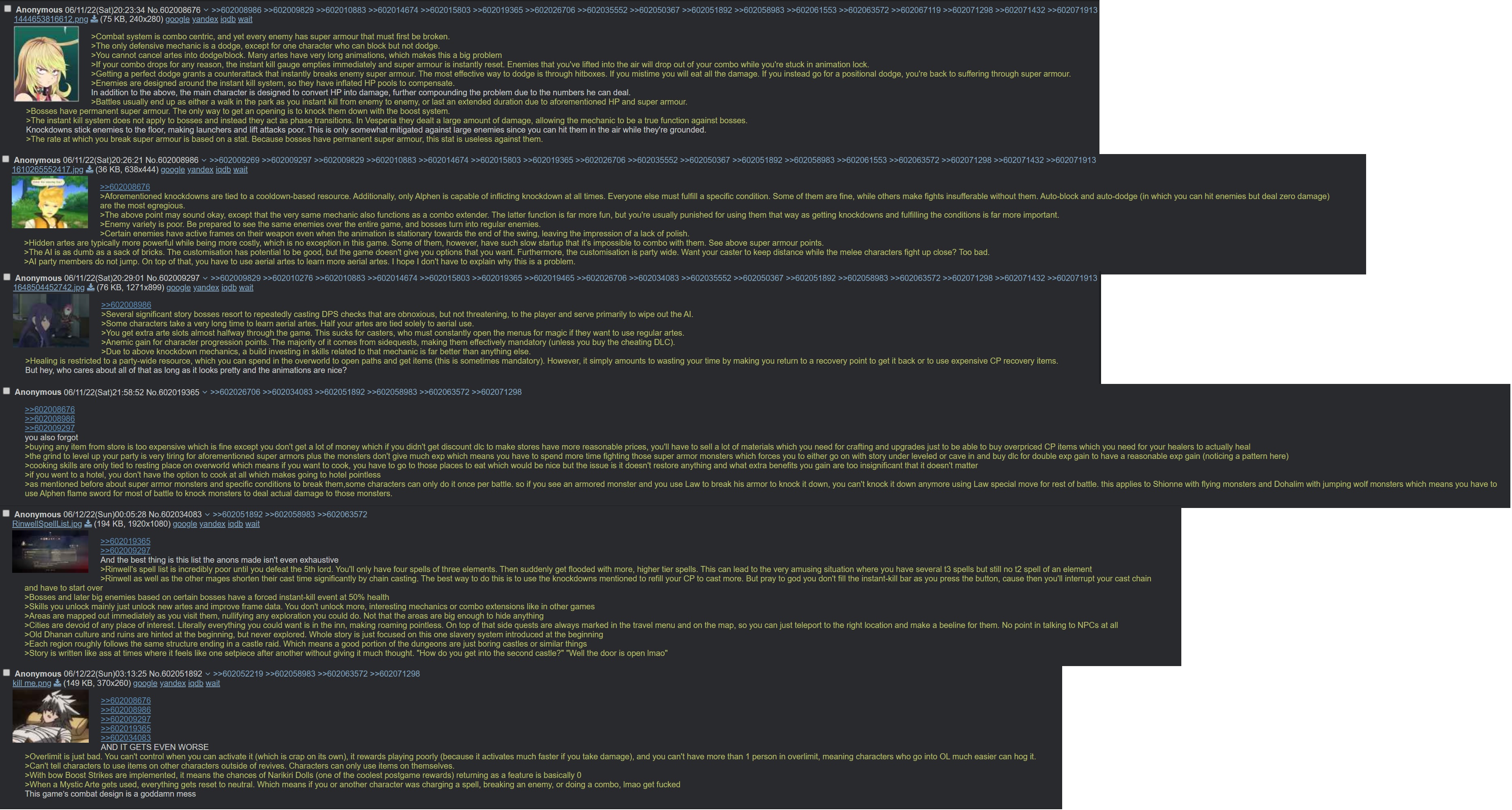 >>7247067052 is worse than 1 in basically every single way and also lazily copies 90% of the game's locations so I see absolutely no reason why you would ever need to ask this question>>724708176No, I would honestly say it beats Zesteria and Symphonia 2 as being the single worst game in the series.