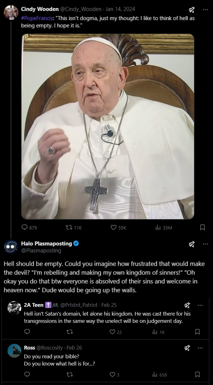 >>724701720>No one knows when that time will come but The Father Himself, not even Jesus does.The fact that you disputed the "time" rather than the rapture itself, which is Divine Comedy tier fanspiction, shows how much of a Christian you really are.>Anyone who gives into that paranoia likely isn't even truly Christian to begin with,You're the one coming in here with promises of it curing depression and saving the lives of NEETs on a board for video games. You are outright asking for them to develop various complexes around the church and to inevitably anticipate the world ending so they can get their 'reward'. >>724701782Because modern Christianity also trains people to believe they are never good enough, and if they aren't good enough then they are sent to the pit of eternal suffering forever and ever.>b-but myI was raised far more Catholic than all of you, considering most of you are very obviously Indian or South American considering when this is all being posted. I went to multiple Catholic schools and went to church every Sunday, and I have seen people break down into tears over the ideas of the Christian afterlife. Not from the existentialism of death, but the idea that any sin removes them from le grace of God.>b-b-b-but-!This is done by design to indoctrinate and retain "believers", no different from when the Church said you could pay your way into heaven.