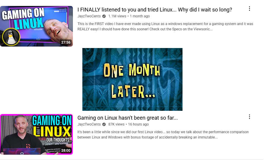 It was pretty funny when the Jayz2cents thing went down, linux evangelists blamed him for it because obviously it couldn't have been the fault of linux and he must have messed up his immutable distro somehow, then the literal lead dev of the distro he used admitted that linux was entirely at fault