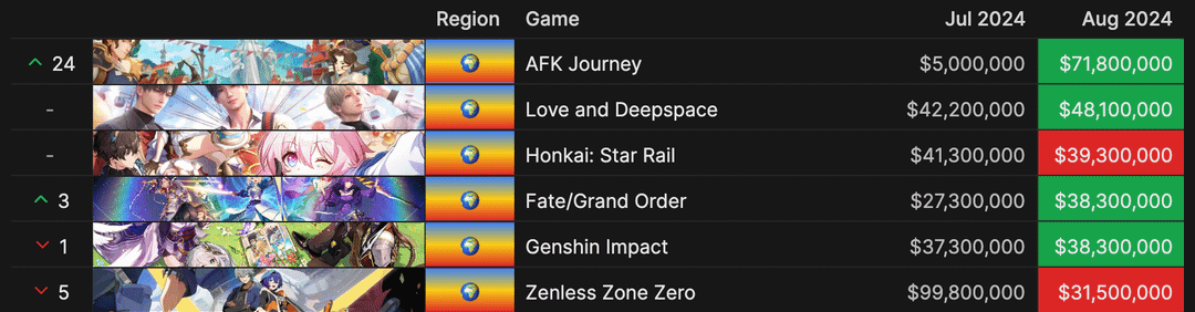 >>724705890In 2024, ZZZ made double what WuWa made in CN at least.