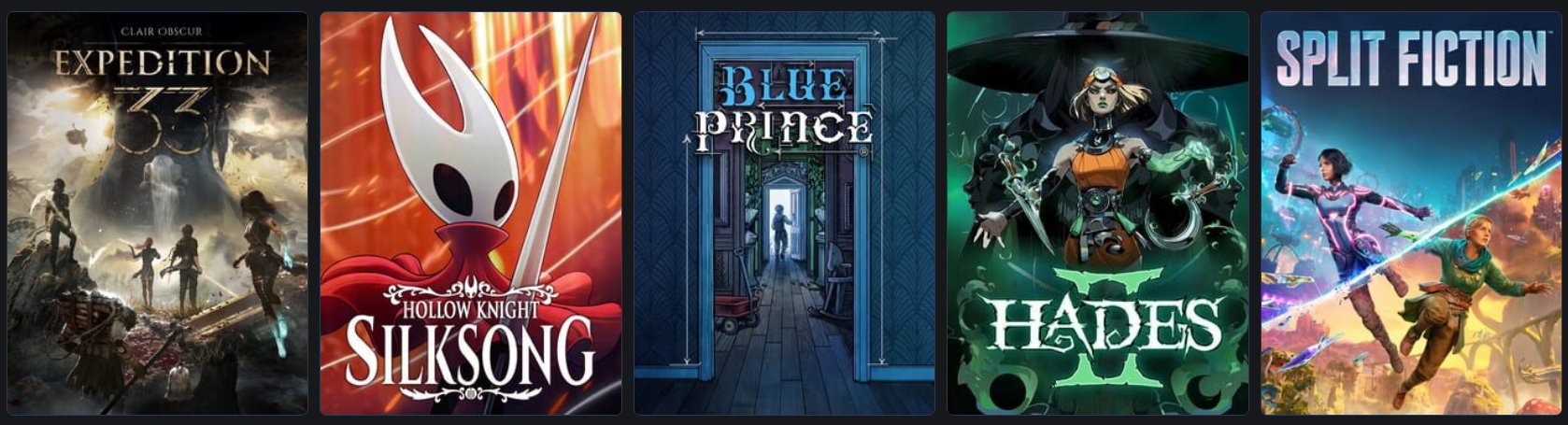 >>724710210Blue prince > Silksong > E33 > Hades 2I didn't play split fiction