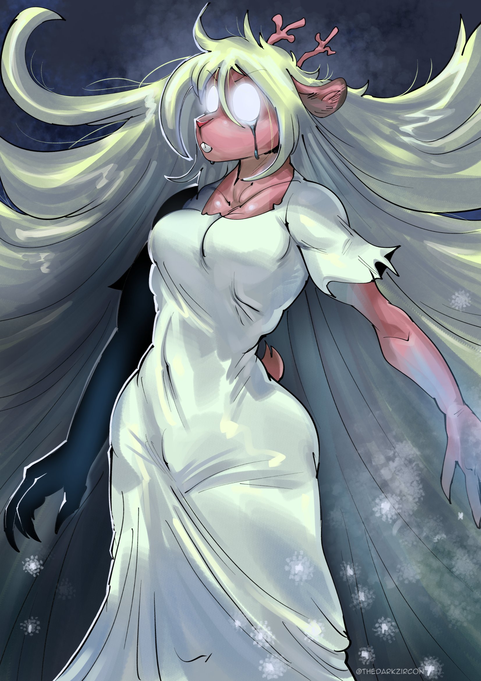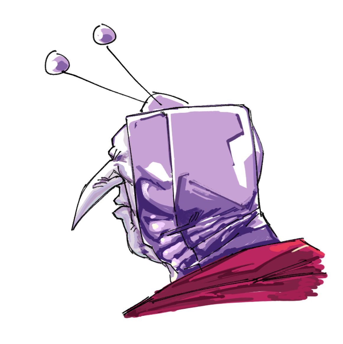 >goes outwards like ralsais talk sprite>but one of the horns is broken off