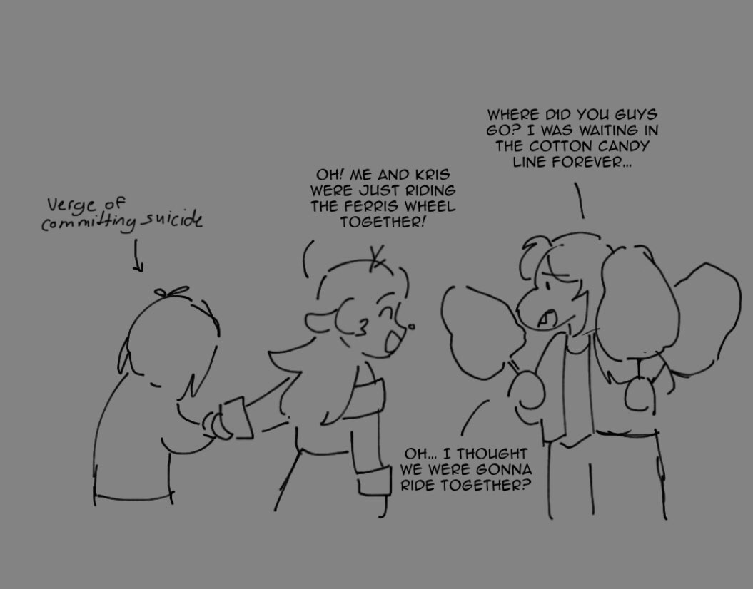 >>724749000It makes sense if you go The Girl route with Kris and realize why she has always been living in Asriel's shadow.Her only childhood friends were Dess and Noelle. Noelle being someone who isn't very forward with her friendship with Kris. Dess being someone who always gave Asriel more attentionThen there's Kris herself being given boy clothes, forced to grow up with no friends except the overtly happy girl who seems avoidant, add this to Noelle almost denying being anything other than neighbor-friends all her life and you get the recipe for a misanthropic girlfailure who wishes she were anyone else. Especially wishes she were her cooler older brother who got all the attention.