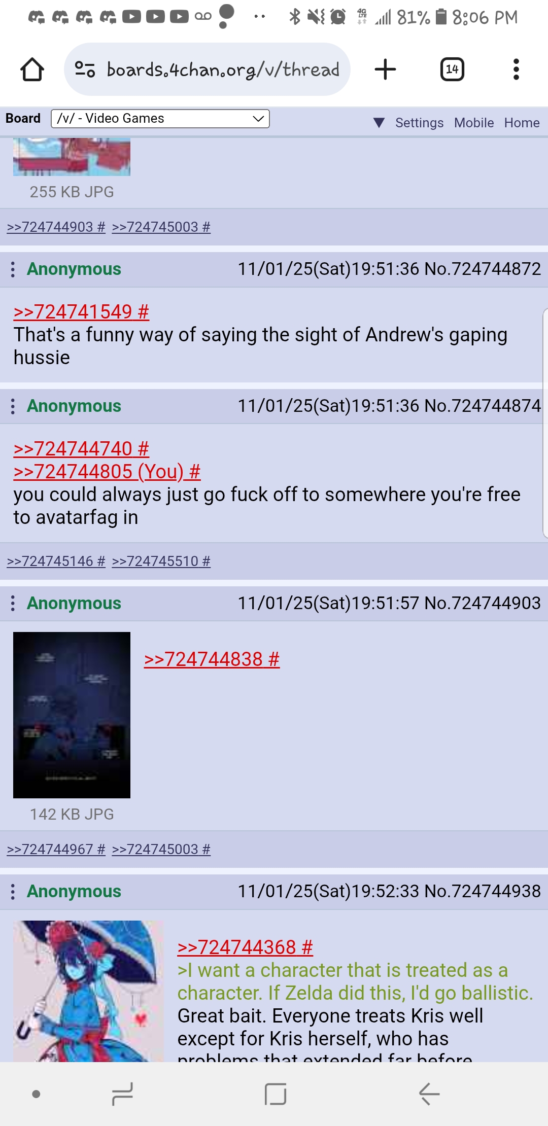 >>724749106>Because we have stopped.>15 pics featuring character not from deltarunestopped my asskill yourself faggot