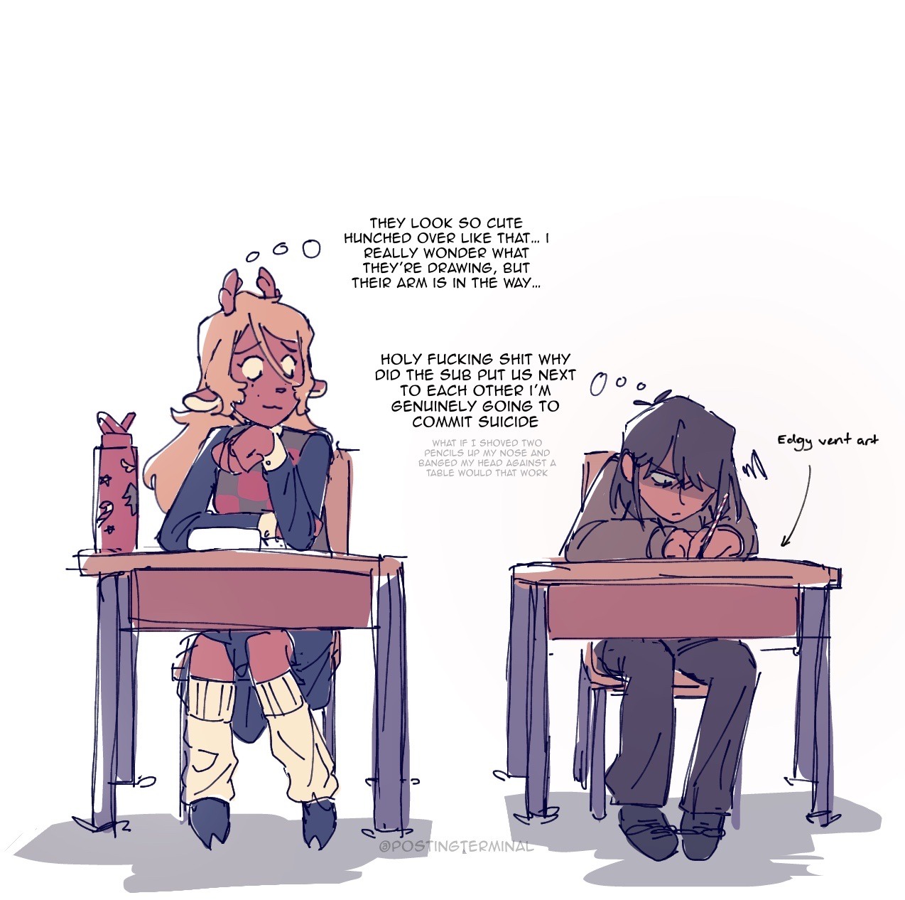 >>724749818OH RIGHT, Also Cattie, who she has a goth friend relationship with, even does goth girl things with her like spirit candles and demon summoning. >>724750113> But Kris being a massive girl failure goes a long way to explain a lot of his attitude and often contradictionary feelings regarding certain people.It also goes a long way to explain why she acts the way she does while being depressed. A guy would act withdrawn and stoic. A girl acts psychotic and moody for attention. She's been tormenting Noelle for most of her life as a way to get attention from the only person she can consider a true friend. That is prime mean girl behavior.>>724750154Susie, Kris, Noelle they are all girlfailures with huge personal baggage.