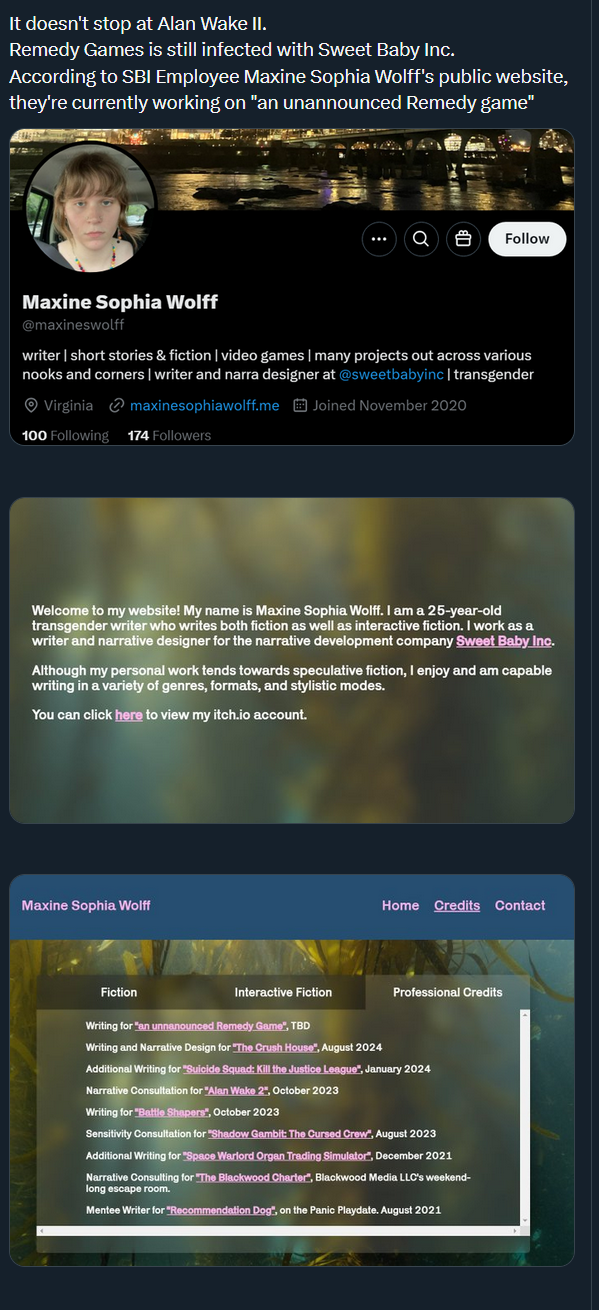 >>724725813>Back when Remedy was making Quantum Break their own website mentioned how they refuse to hire finnish people in favor of more "international skills".That's really messed up but about what i'd expect of leftists.Pic related is their next "unannounced" game's writer by the by.