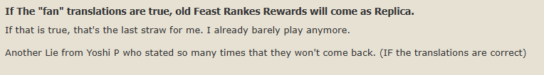 JP tweets confirmed it was a real translation. Old feast gear will slowly be added as replicas, but we'll find out more about it next LL.