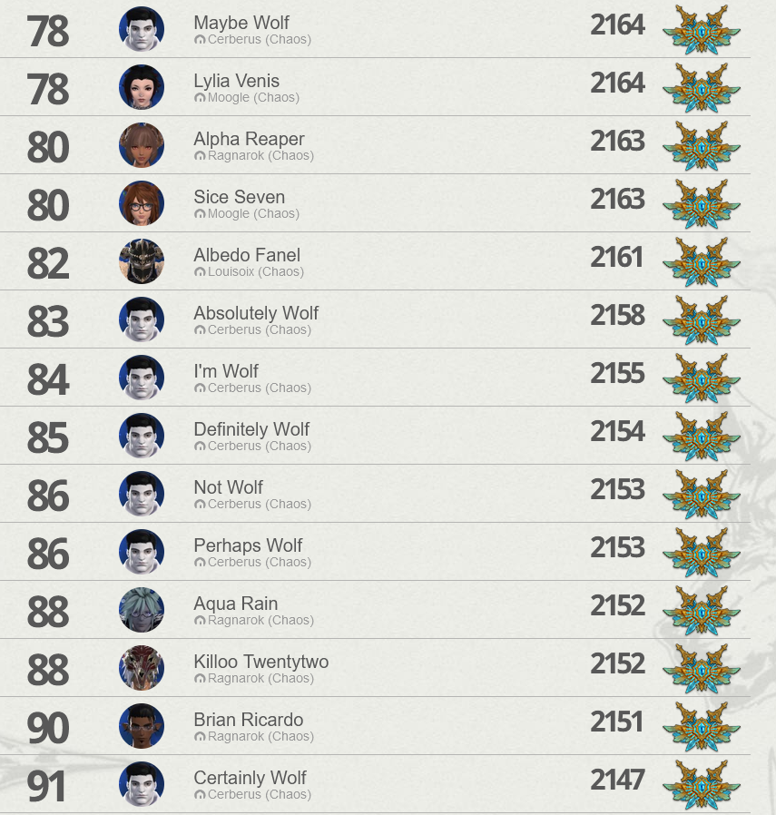 >>724715325Feast was the previous ranked pvp for Final Fantasy 14. Top 100 players per season received exclusive armor, but only for that season so it was a real "you had to be there" experience. Since its MMO pvp, it was dogshit and filled with alts to clog up the top 100 for a full wintrading experience.Now it is finally returning for people who simply play the game and the wintraders are seething hard they don't have some exclusive anymore.