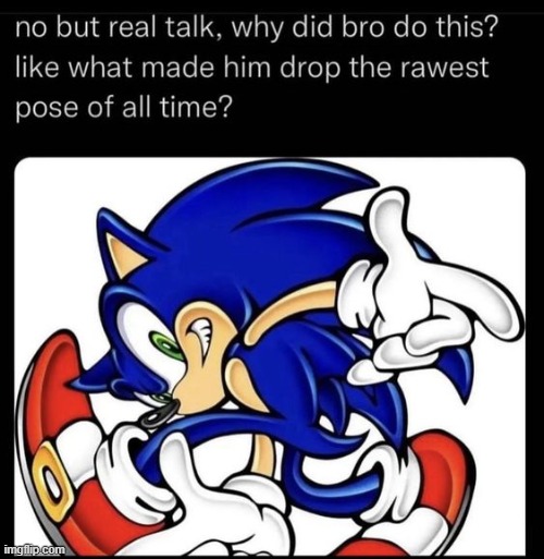 >>724721624>>724722015There is Sonic canon, nearly every Sonic media has internal canon and most of them share an external overarching canon, it's just disconnected and confused because it's written by different peopleThe way I see it there's hard canon- the characters, the lore aspects set in stone, things like the chaos emeralds and rings and all that- and then there's soft canon- specific backstory stuffSome Sonic media is clearly an AU, like Unleashed and X, it's not strictly concrete Sonic lore, it's Sonic and the world of Sonic in a different kinda story, like a "what if things were this way instead?" situation, every new game/show/movie/comic is it's own tale about these characters and their world with some kinda change or hook that make it its ownBut as a result it is jarring when characters call back to it like "Hey Sonic, remember when you did THING THAT IS IMPOSSIBLE TO COME BACK FROM in that one game THE BIG EPIC WORLDCHANGING EVENT THAT CANNOT BE LOGICALLY EXPLAINED IN THIS UNIVERSE? Yeah, it was really epic how you just did that and somehow it affects nothing but we still remember it"