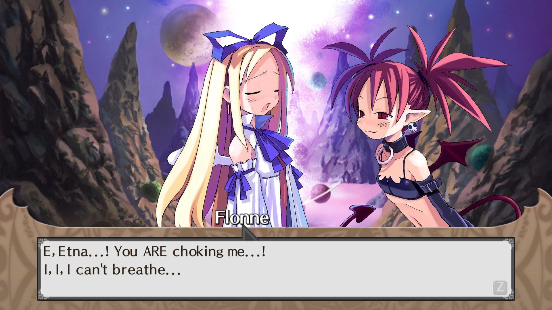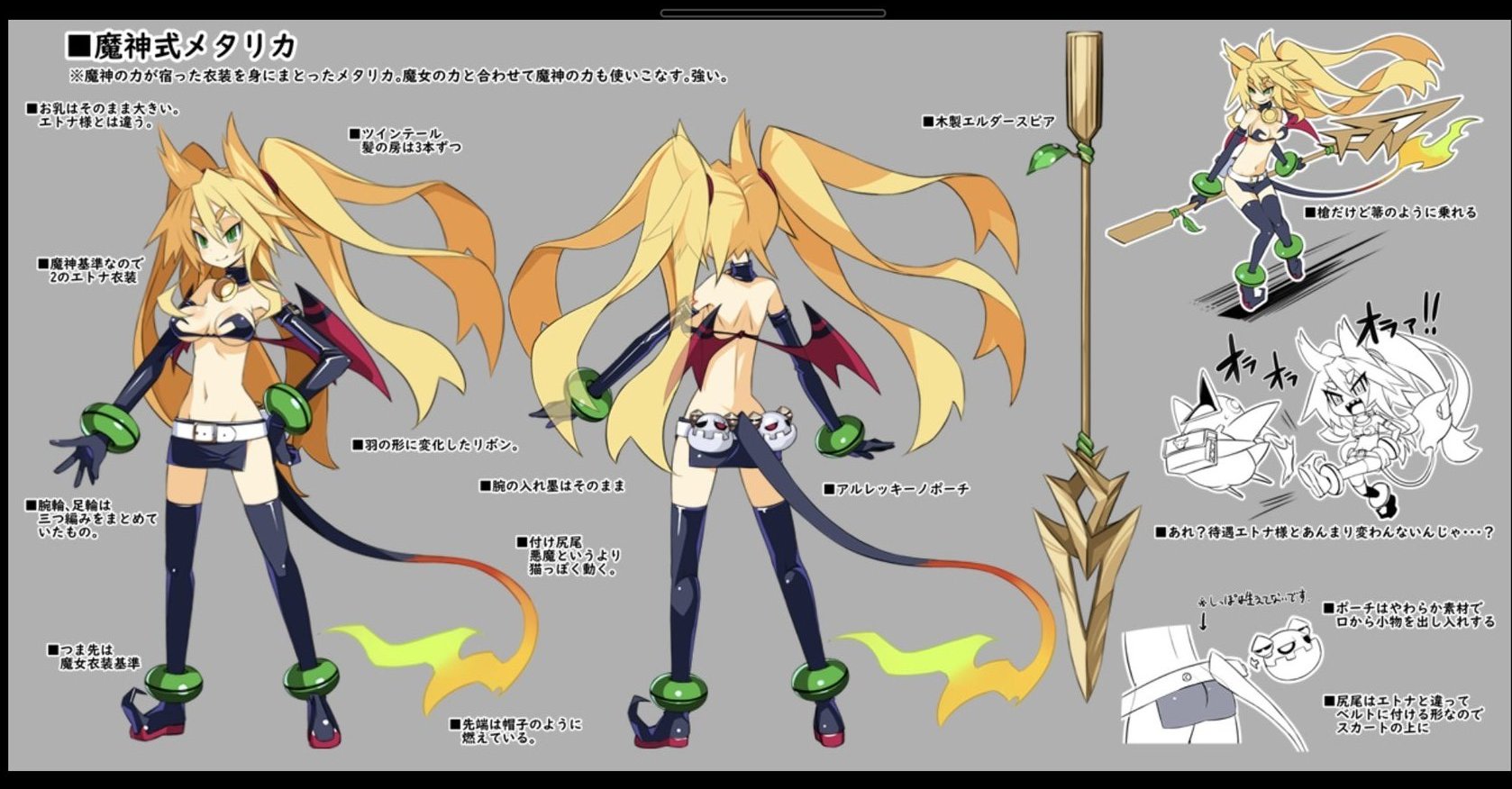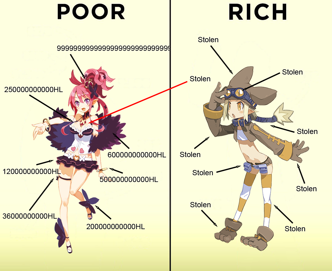 I love how in the early games Etna actually had a body definition and small cupcake boobs, instead of being two lines for the sides of the torso and that's it. The original Disgaea is still the best in so many ways, and all the sequels just fucked it up more and more (they only changed the gameplay to be easier and more grind focused; D1 wasn't even grind focused, it was just optionally possible - you could finish the game easily at level ~100 and even most postgame content at level ~1000).