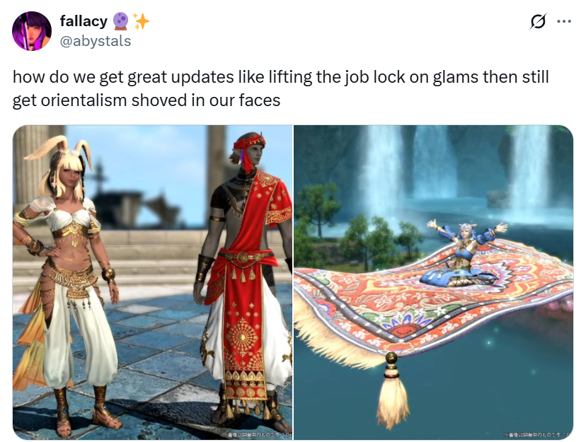 They made a huge mistake when they started mapping real life cultures onto the world.Now they're under the thumb of these types of people.It's why Dawntrail had no teeth