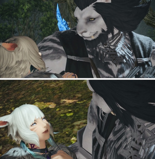 I just finished the heavansward hildi quests, I got a good chuckle out of the final shot of the ending cutscene when the colbyns and the zombie king dude, hoe these stormblood ones are good