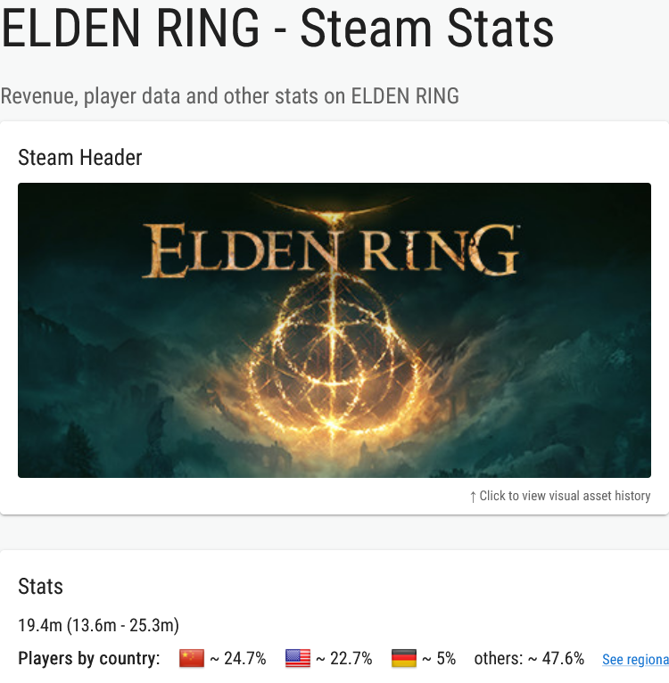 >>724762998The only reason Elden Ring even got those peak numbers in the first place was thanks to China.>>724763334Woodworking awaits, cucky.