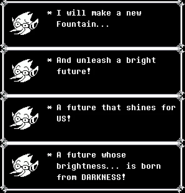 this is still the best part of the game. When Deltarune actually felt like the Legend of Delta Rune. Before the theorybait and the memes took over. No bullshit, a story told genuinely. I want the Kingdom of Darkness that was promised.