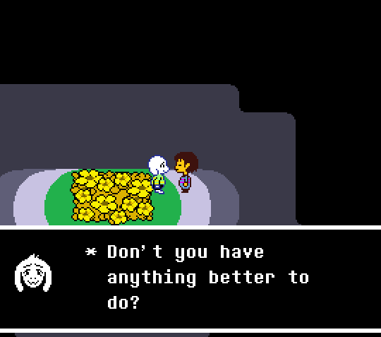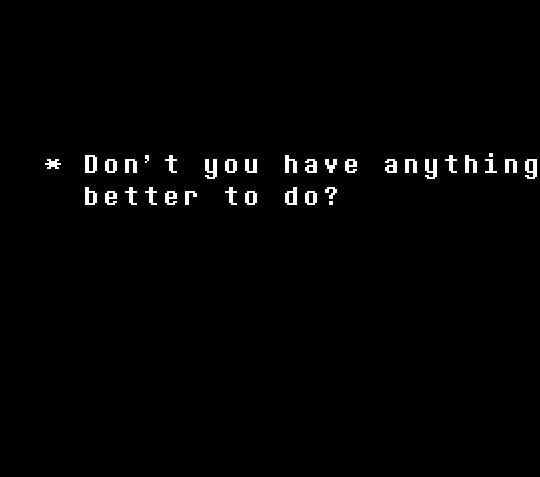 >>724808005Honestly, Chara in soulless pacifist mostly seems annoyed with you not moving on to a different game.